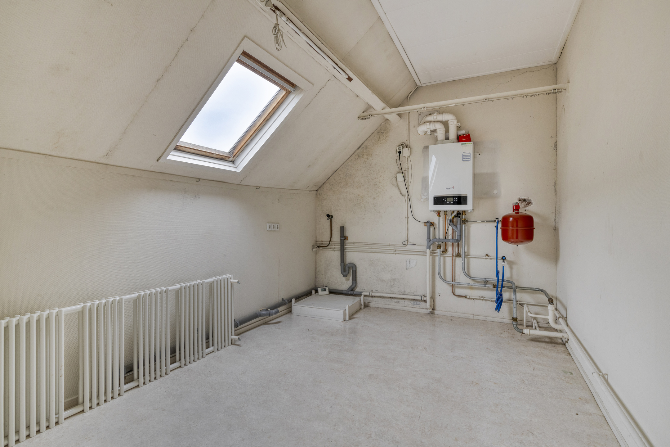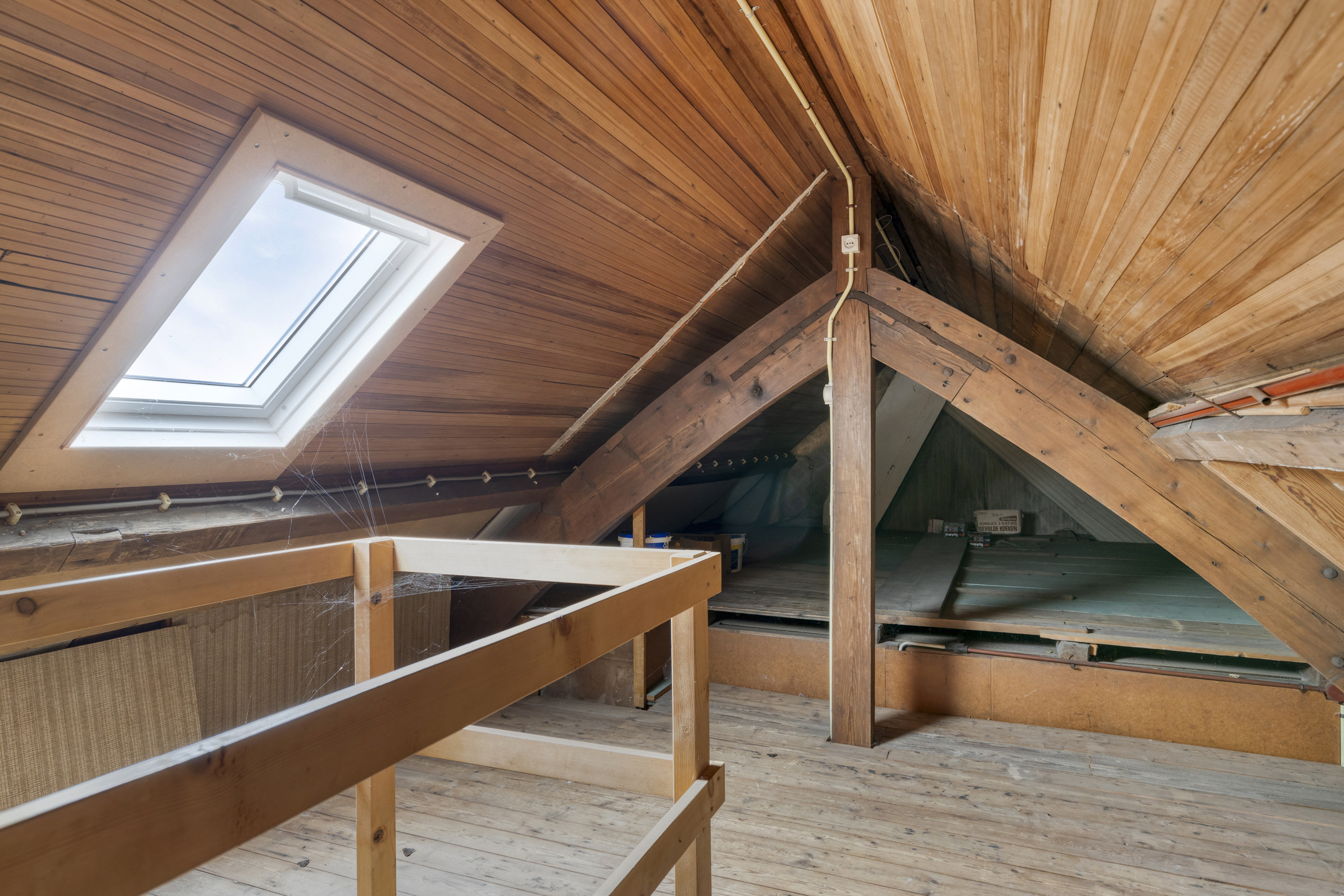 Op de eerste verdieping is een ruime overloop met een vlizotrap naar de hoge zolderverdieping.
